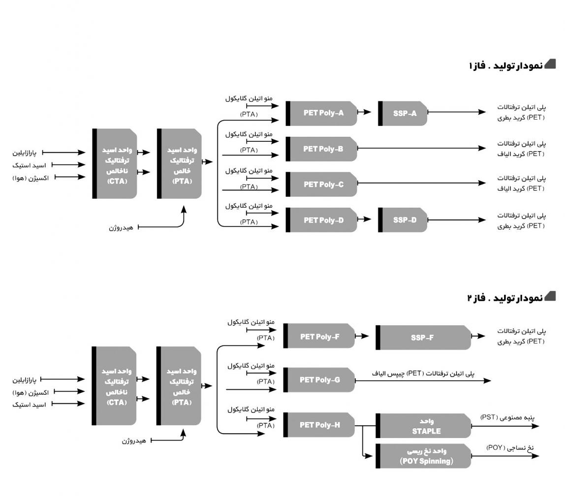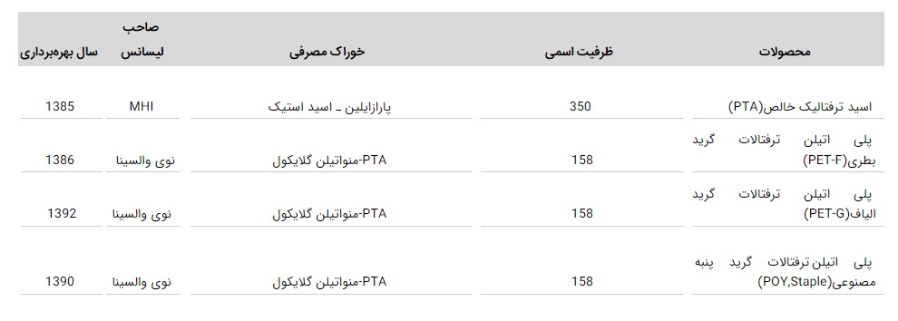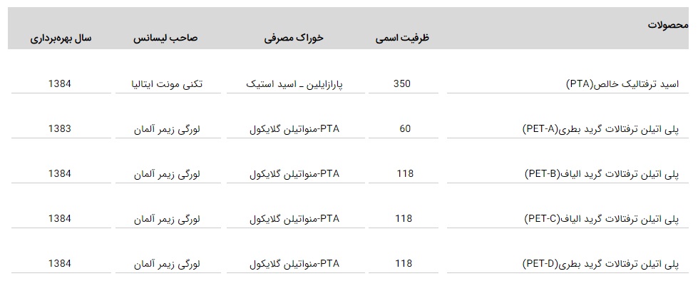 عمده کاربرد محصولات پلی‌اتیلن ترفتالات در دو بخش نوع الیاف و بطری به شرح زیر می‌باشد:
