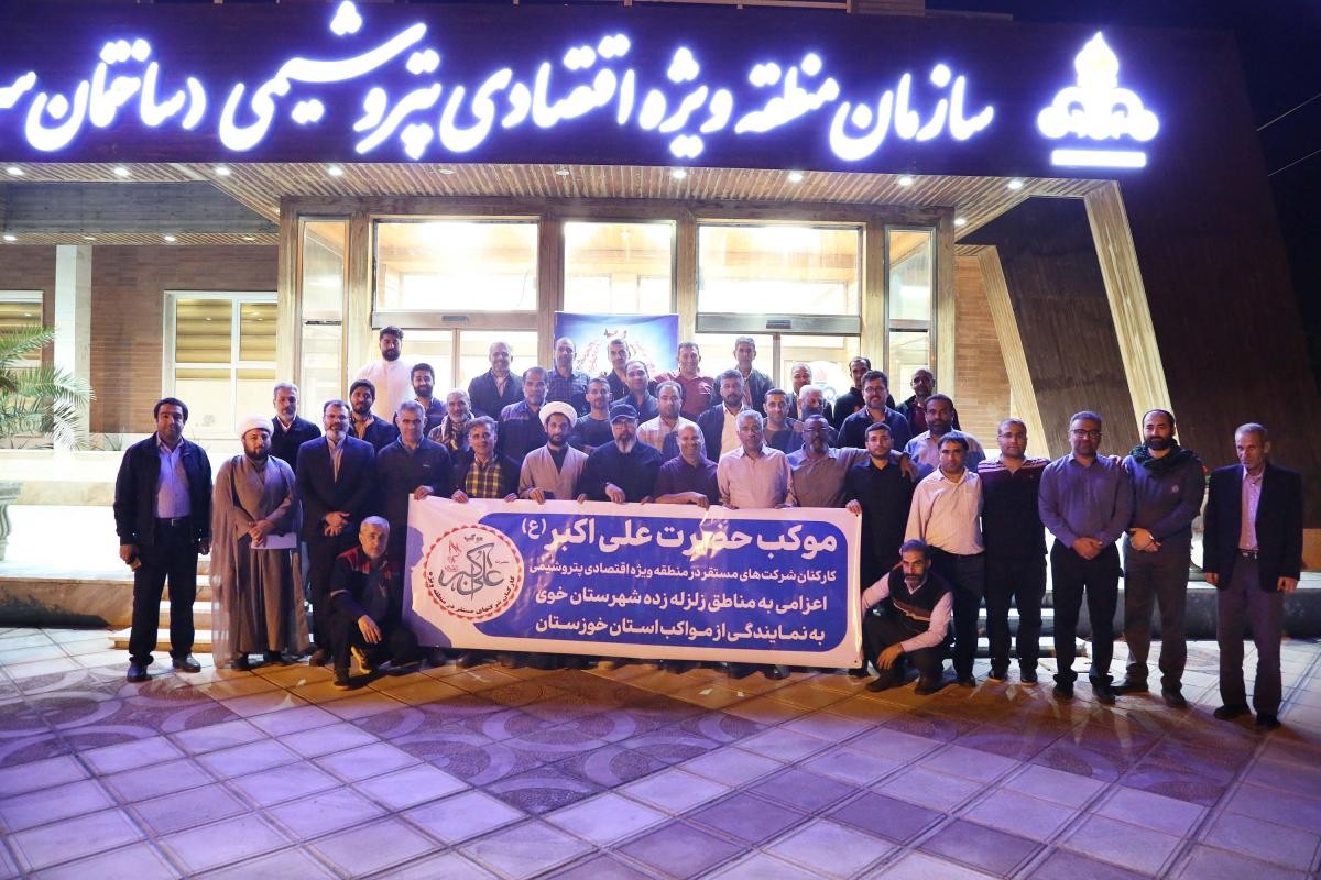 به گزارش روابط عمومی سازمان منطقه ویژه اقتصادی پتروشیمی، موکب حضرت علی اکبر(ع) که به نمایندگی از مواکب استان خوزستان برای کمک به مردم زلزله زده خوی در استان آذربایجان غربی اعزام شده بود شامگاه پنجشنبه وارد فرودگاه اهواز شد و مورد استقبال مدیر عامل سازمان منطقه ویژه اقتصادی پتروشیمی و نماینده ستاد بازسازی عتبات استان خوزستان قرار گرفت.