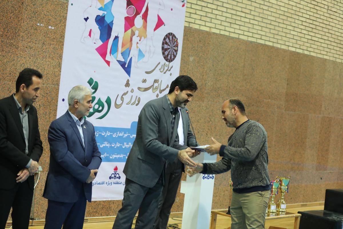 در پایان این مراسم توسط مدیرعامل سازمان منطقه ویژه اقتصادی پتروشیمی و برخی اعضای هیات رئیسه از تیمهای منتخب و برگزیدگان و نفرات اول تا سوم رشتههای انفرادی تقدیر بعمل آمد و جامهای مربوطه و هدایایی به رسم یادبود تقدیم شرکت کنندگان گردید.