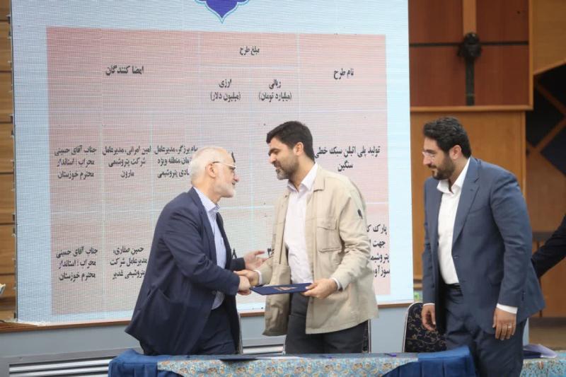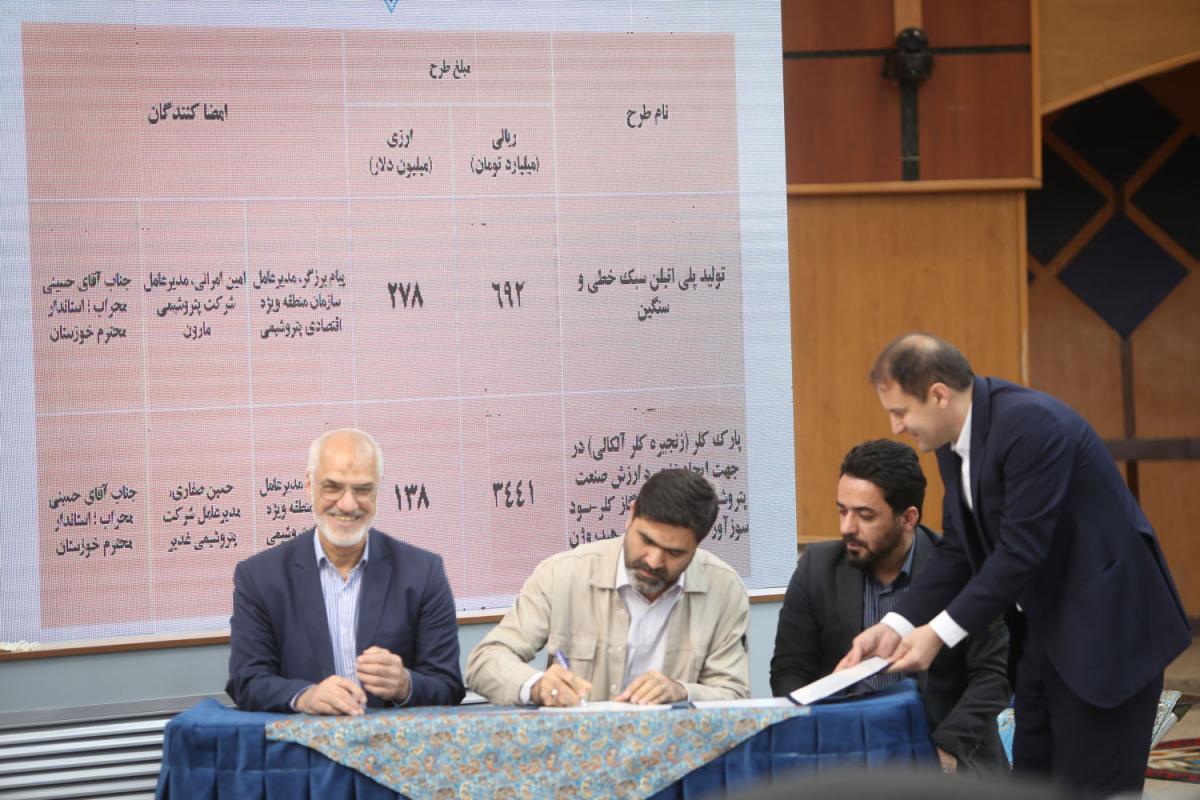 طی آیینی با حضور رئیس جمهور محترم، اعضای هیات دولت و استاندار خوزستان تفاهمنامه احداث دو واحد پتروشیمی به ارزش بیش از ۴ هزار میلیارد تومان در منطقه ویژه اقتصادی پتروشیمی به امضا رسید.
