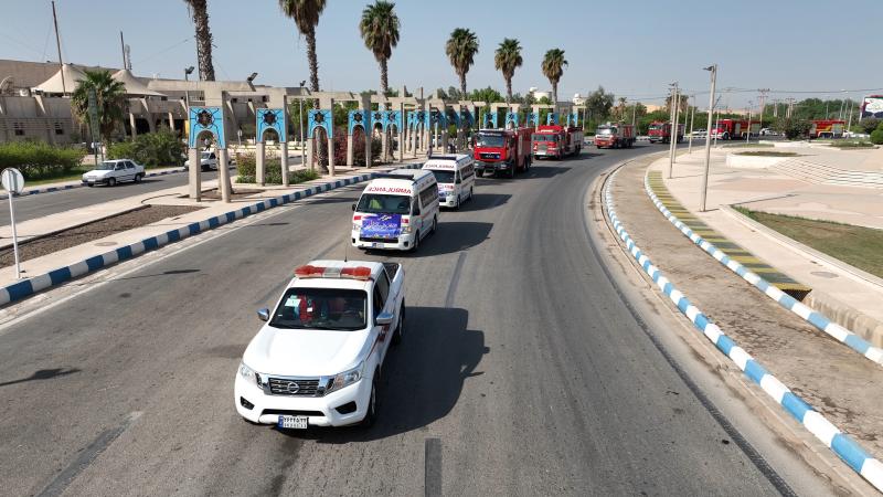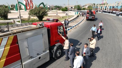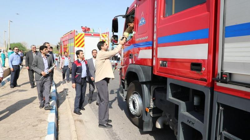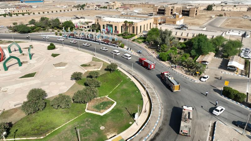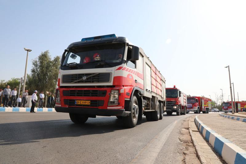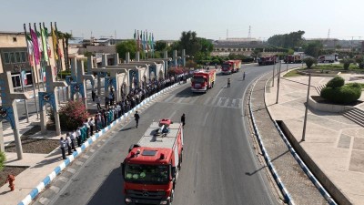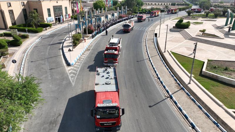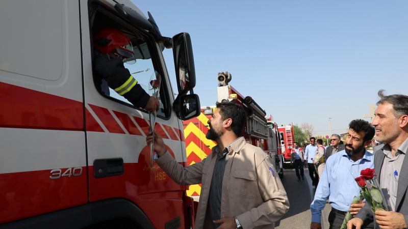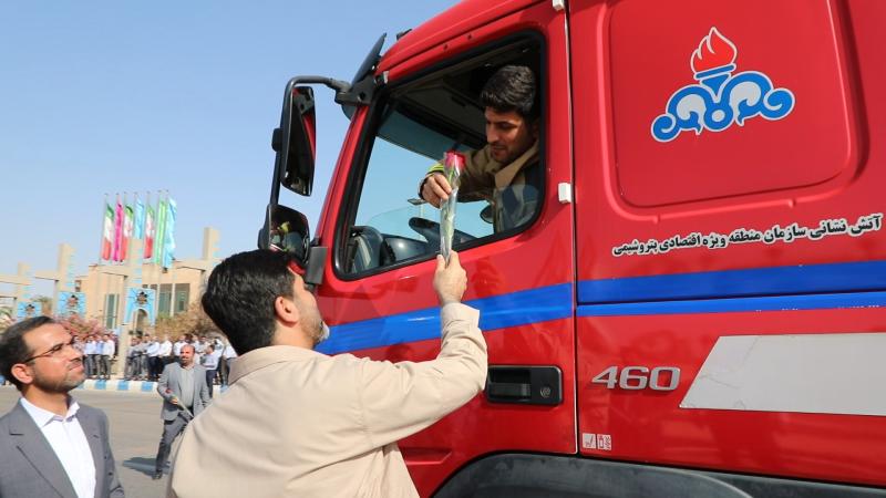 رژه خودرویی نیروهای آتش نشان و حراست ارشد منطقه ویژه اقتصادی پتروشیمی به مناسبت هفتم مهر ماه روز ملی ایمنی و آتش نشانی در میدان آزادی منطقه ویژه اقتصادی پتروشیمی.