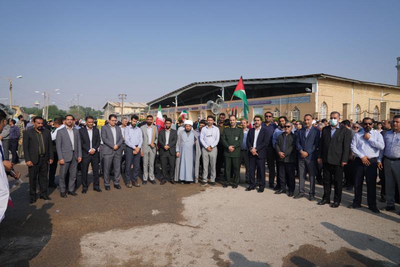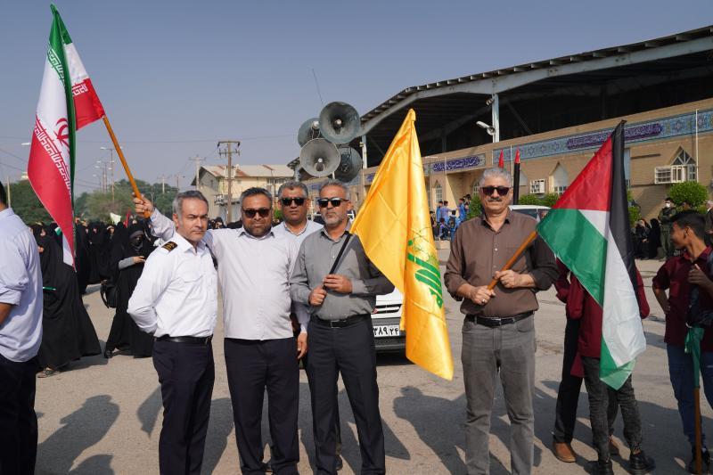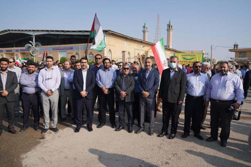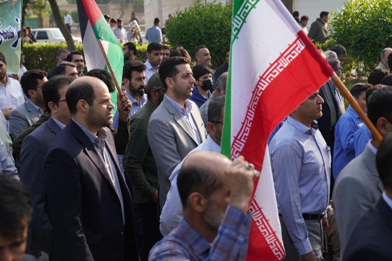 کارکنان سازمان منطقه ویژه اقتصادی پتروشیمی ضمن حضور در راهپیمایی حمایت از مردم مظلوم غزه، کودک کشی و جنایات جنگی رژیم صهیونیستی در فلسطین را محکوم کردند.