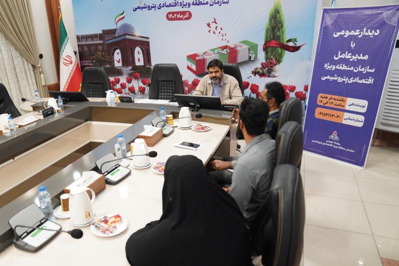 با هدف تکریم ارباب رجوع، بیان دغدغههای مردمی و ارتباط بدون واسطه با کارکنان، دیدار عمومی مدیرعامل سازمان منطقه ویژه اقتصادی پتروشیمی در محل سالن شهید فخریزاده برگزار گردید.