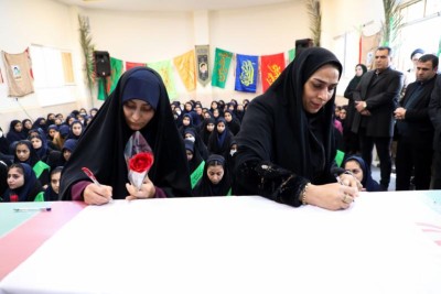 استقبال دانش آموزان دختر مدرسه 12 کلاسه مارون بندر امام خمینی(ره) از شهید گمنام
