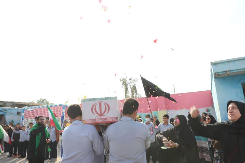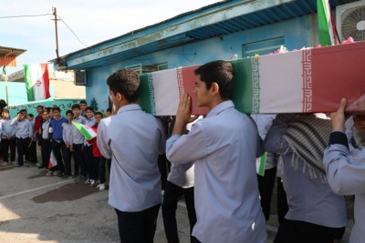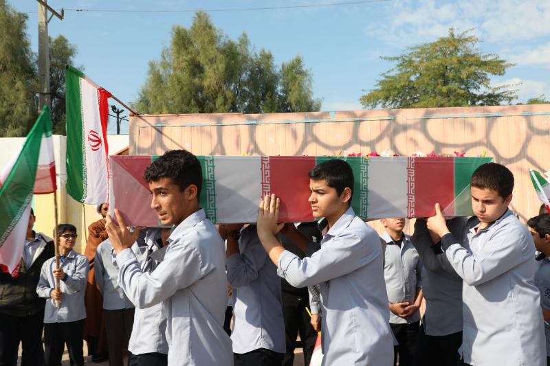 پیکر پاک و مطهر شهید گمنام دوران دفاع مقدس در مدرسه پسرانه شهید باکری شهر چمران مورد استقبال دانش آموزان پسر این مدرسه قرار گرفت.