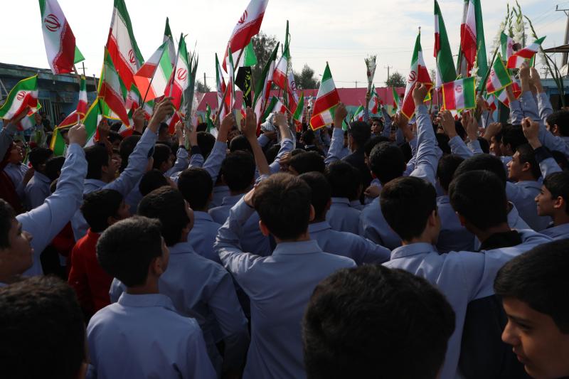 استقبال دانش آموزان مدرسه پسرانه شهید باکری از پیکر پاک شهید گمنام