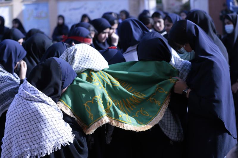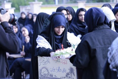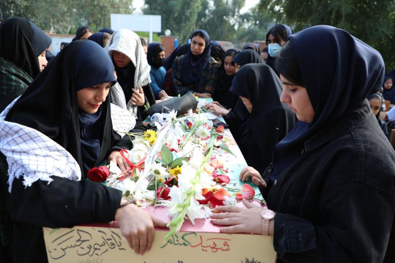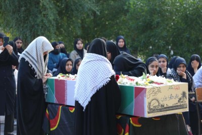 پیکر پاک و مطهر شهید گمنام دوران دفاع مقدس در مدرسه حجاب شهرک بعثت مورد استقبال دانش آموزان دختر این مدرسه قرار گرفت.