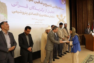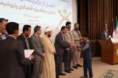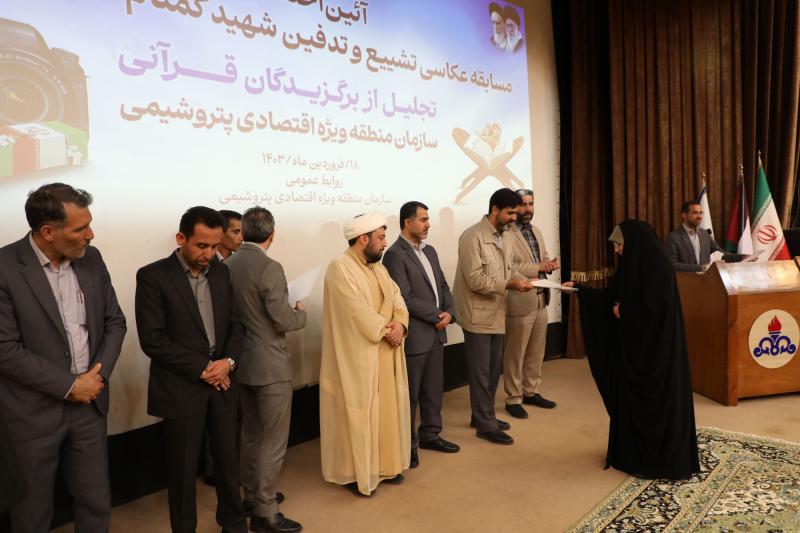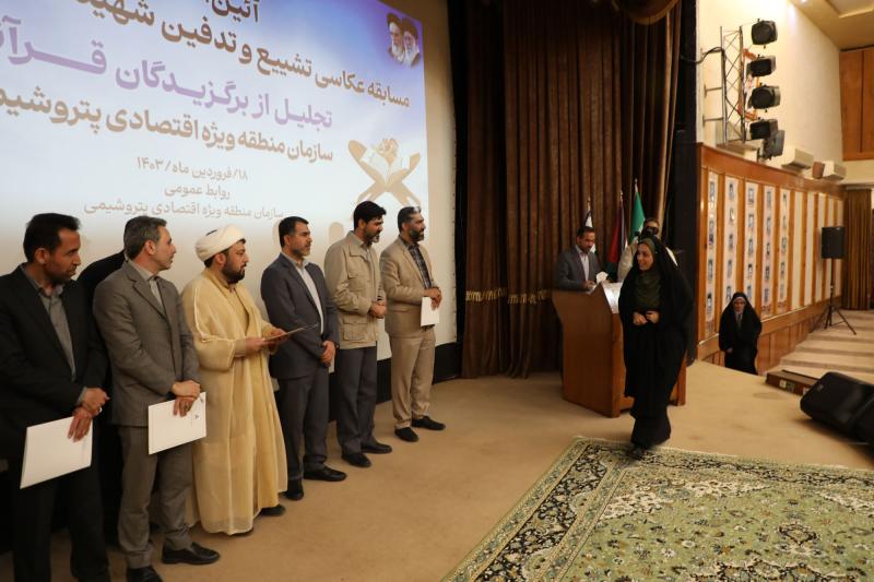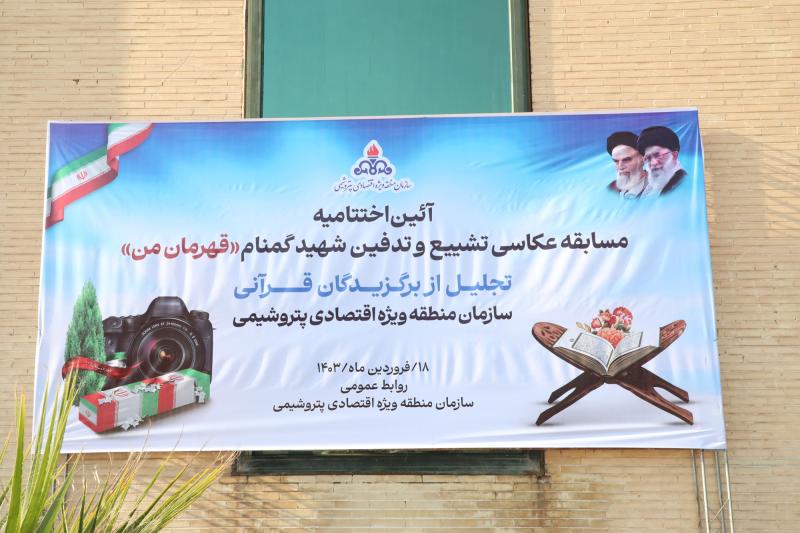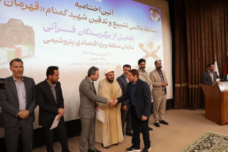 طی آئینی اختتامیه مسابقه عکاسی تشییع و تدفین شهید گمنام "قهرمان من" و تجلیل از برگزیدگان قرآنی سازمان منطقه ویژه اقتصادی پتروشیمی برگزار شد.