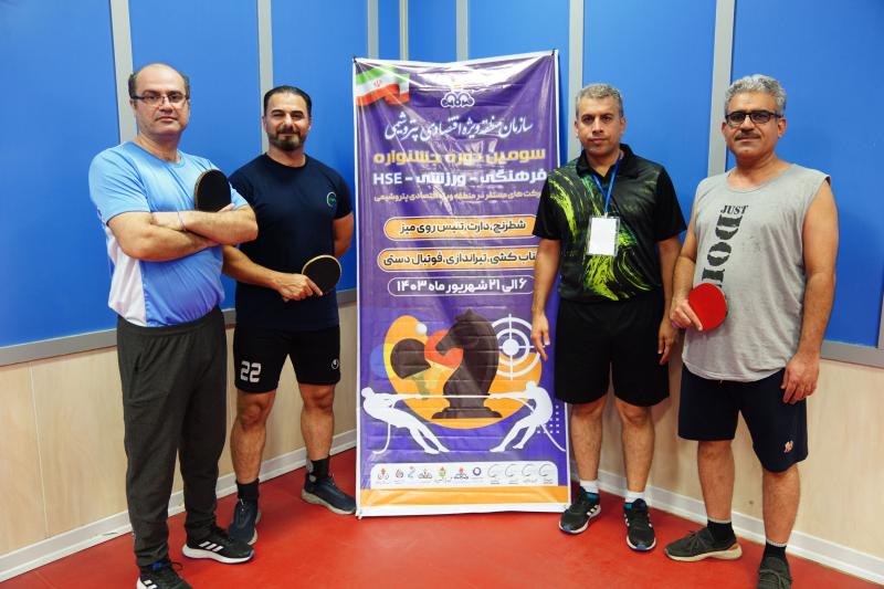 مسابقات تنیس روی میز سومین جشنواره فرهنگی ورزشی HSE شرکت های پتروشیمی مستقر در منطقه ویژه اقتصادی پتروشیمی در محل مجموعه ورزشی شهدای خلیج فارس شهرک بعثت برگزار شد.