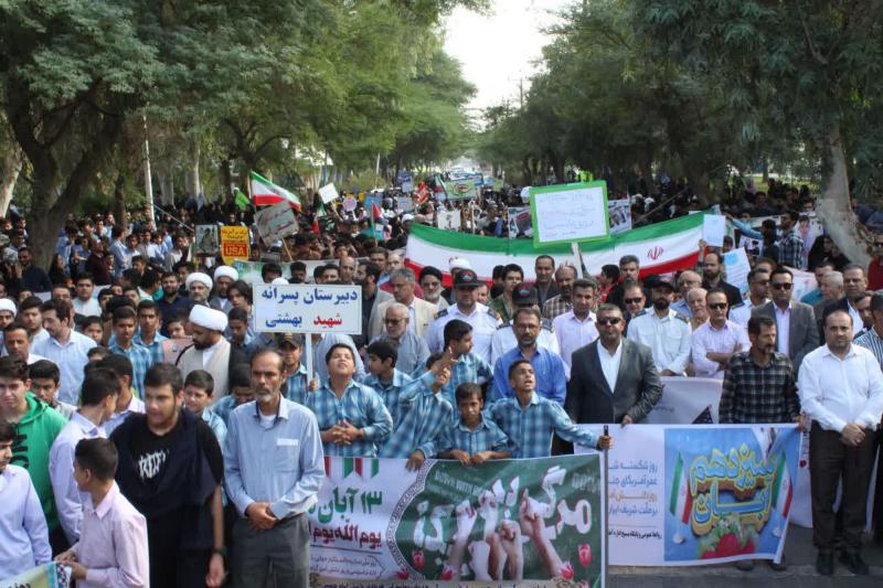 مدیرعامل و کارکنان سازمان منطقه ویژه اقتصادی پتروشیمی صبح امروز با حضور در راهپیمایی باشکوه 13 آبان شهرستان بندرماهشهر و بندر امام خمینی(ره) که به مناسبت روز دانش آموز و روز ملی مبارزه با استکبار جهانی برگزار گردید، با آرمان های امام خمینی(ره) و رهبر معظم انقلاب اسلامی (مدظله العالی) تجدید پیمان کردند.