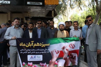 به گزارش روابط عمومی سازمان منطقه ویژه اقتصادی پتروشیمی، مدیرعامل و کارکنان سازمان منطقه ویژه اقتصادی پتروشیمی صبح امروز با حضور در راهپیمایی باشکوه 13 آبان شهرستان بندرماهشهر و بندر امام خمینی(ره) که به مناسبت روز دانش آموز و روز ملی مبارزه با استکبار جهانی برگزار گردید، با آرمان های امام خمینی(ره) و رهبر معظم انقلاب اسلامی (مدظله العالی) تجدید پیمان کردند.