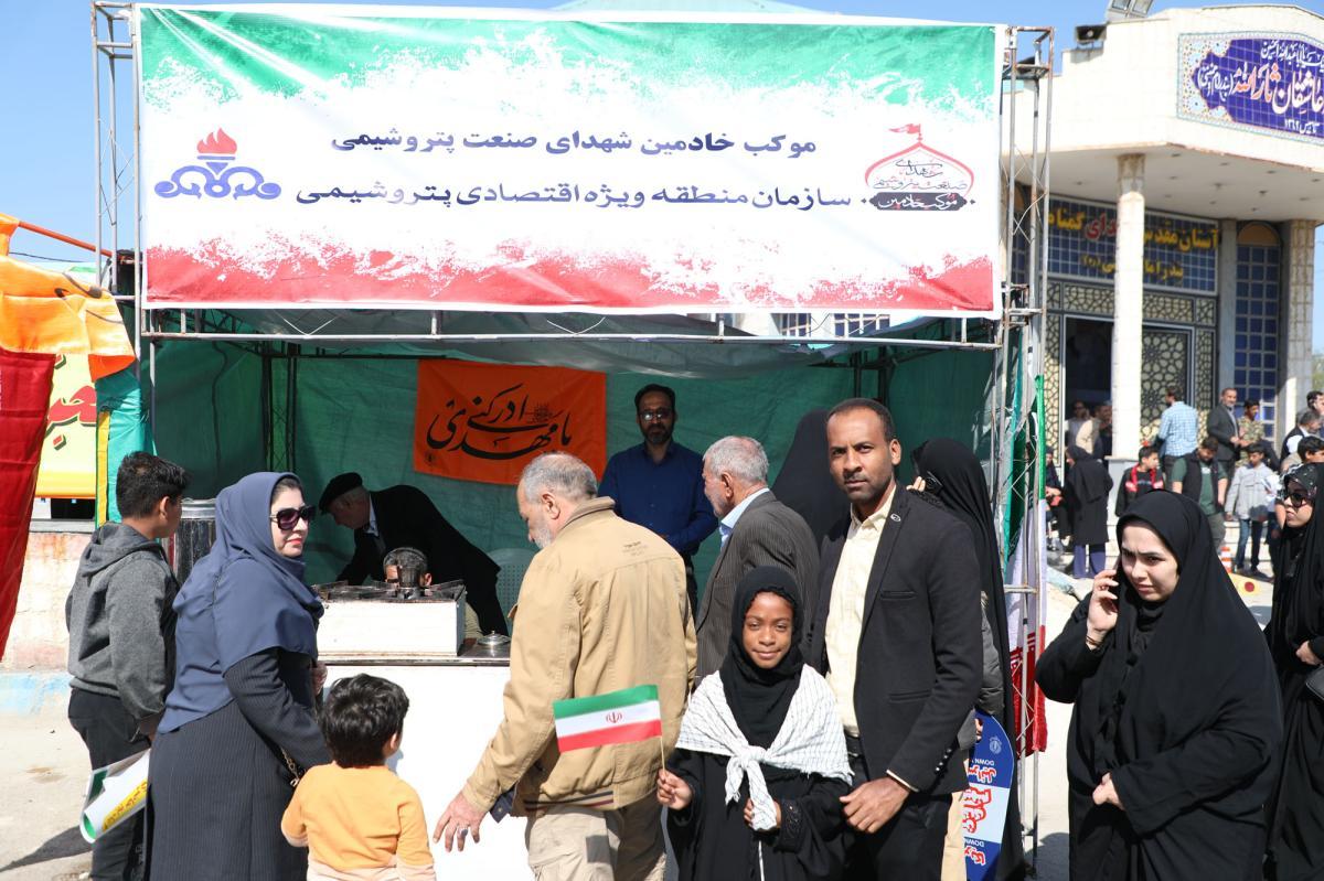 سازمان منطقه ویژه اقتصادی پتروشیمی به همت پایگاه مقاومت بسیج و روابط عمومی، سه ایستگاه صلواتی در مسیر راهپیمایی در شهرهای بندر ماهشهر، بندر امام خمینی(ره) و چمران برپا کرد و از راهپیمایان پذیرایی به عمل آورد.