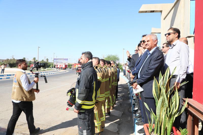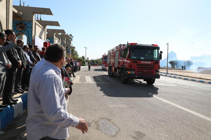 در ادامه، خودروهای سنگین و سبک آتش‌نشانی سازمان منطقه ویژه اقتصادی پتروشیمی و شرکت‌های پتروشیمی مستقر در منطقه، با اجرای رژه در سطح منطقه و میدان آزادی، مورد استقبال مدیرعامل، هیئت رئیسه و کارکنان سازمان قرار گرفتند.