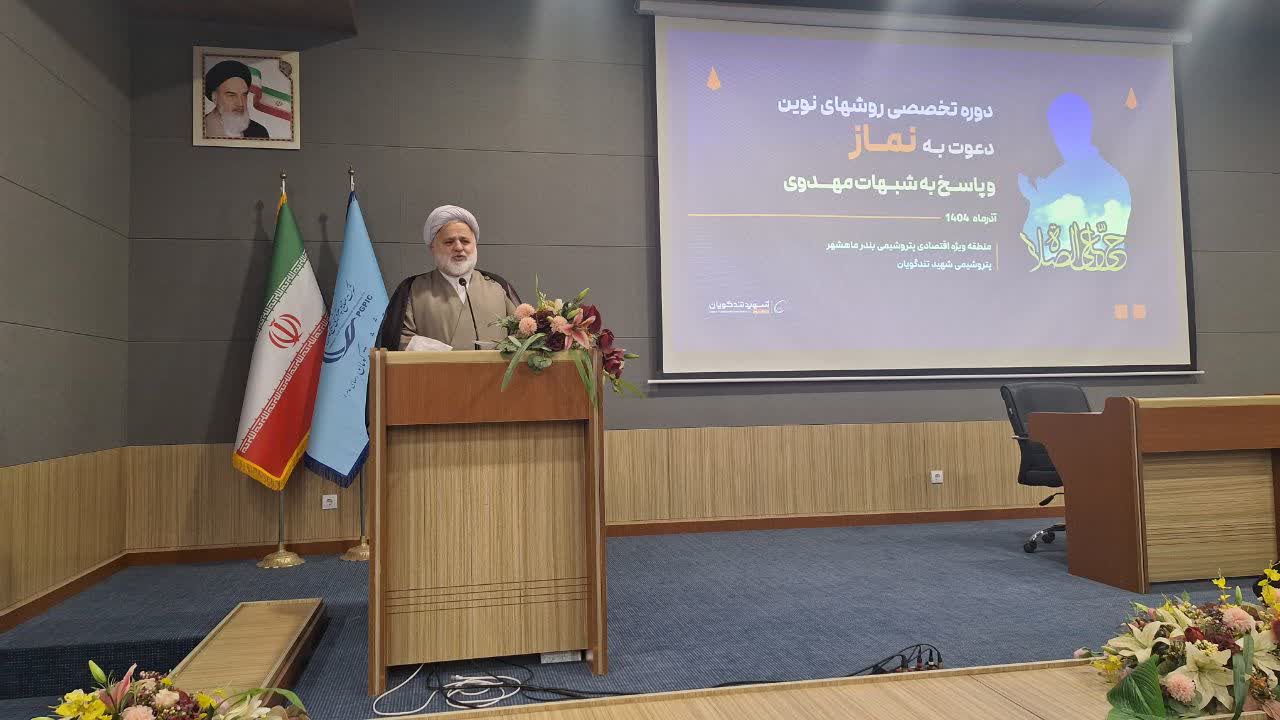 به گزارش روابط عمومی سازمان منطقه ویژه اقتصادی پتروشیمی، در روز نخست، دوره تخصصی «روش‌های نوین دعوت به نماز و پاسخ به شبهات مهدوی» با حضور حجت‌الاسلام والمسلمین محمدپور، جمعی از مشاوران فرهنگی، اساتید مرکز تخصصی قم و روحانیون شرکت‌های تابع وزارت نفت در پتروشیمی شهید تندگویان برگزار شد.