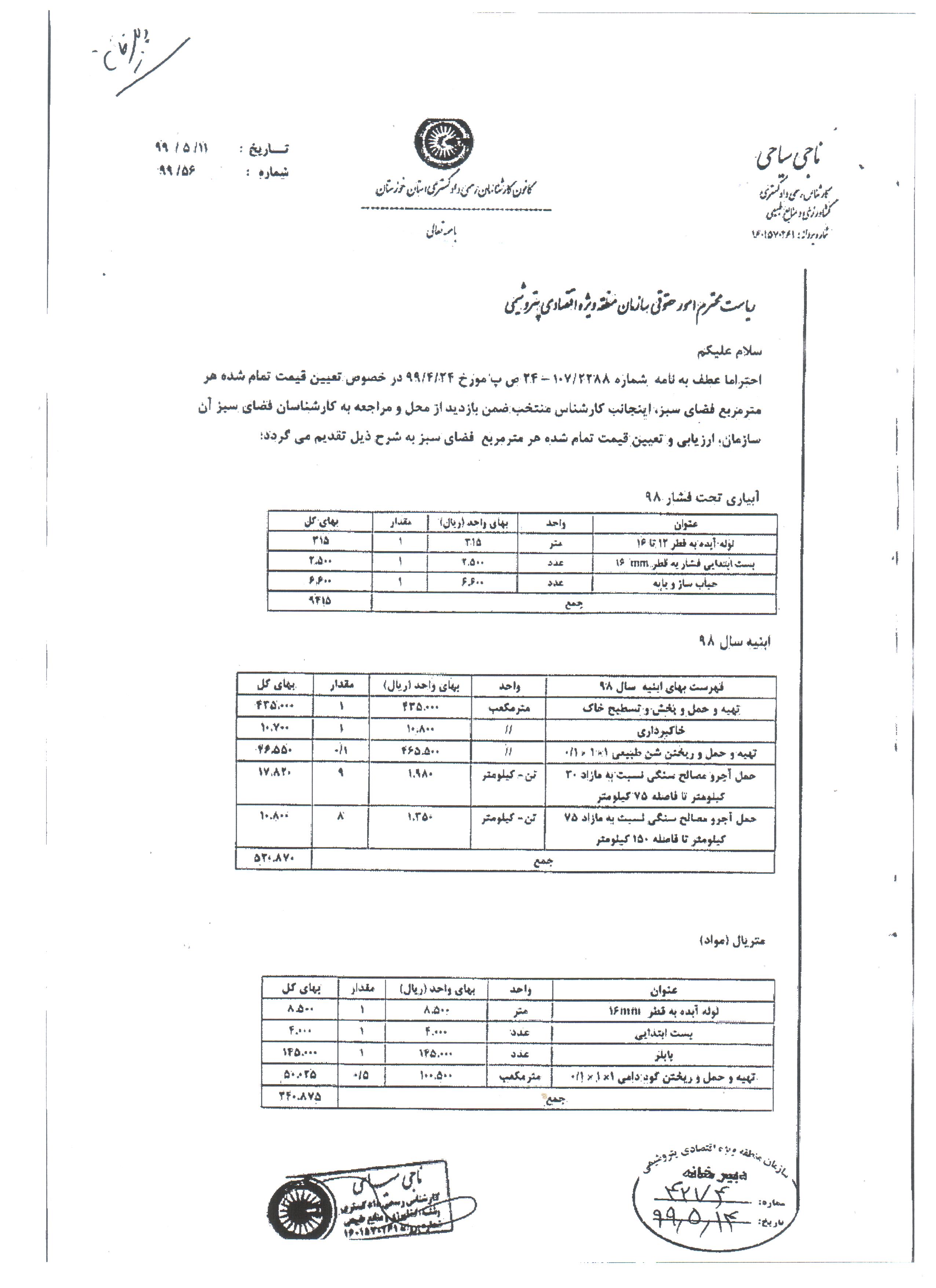 قیمت هر متر فضای سبز صدور پروانه در سال 99
